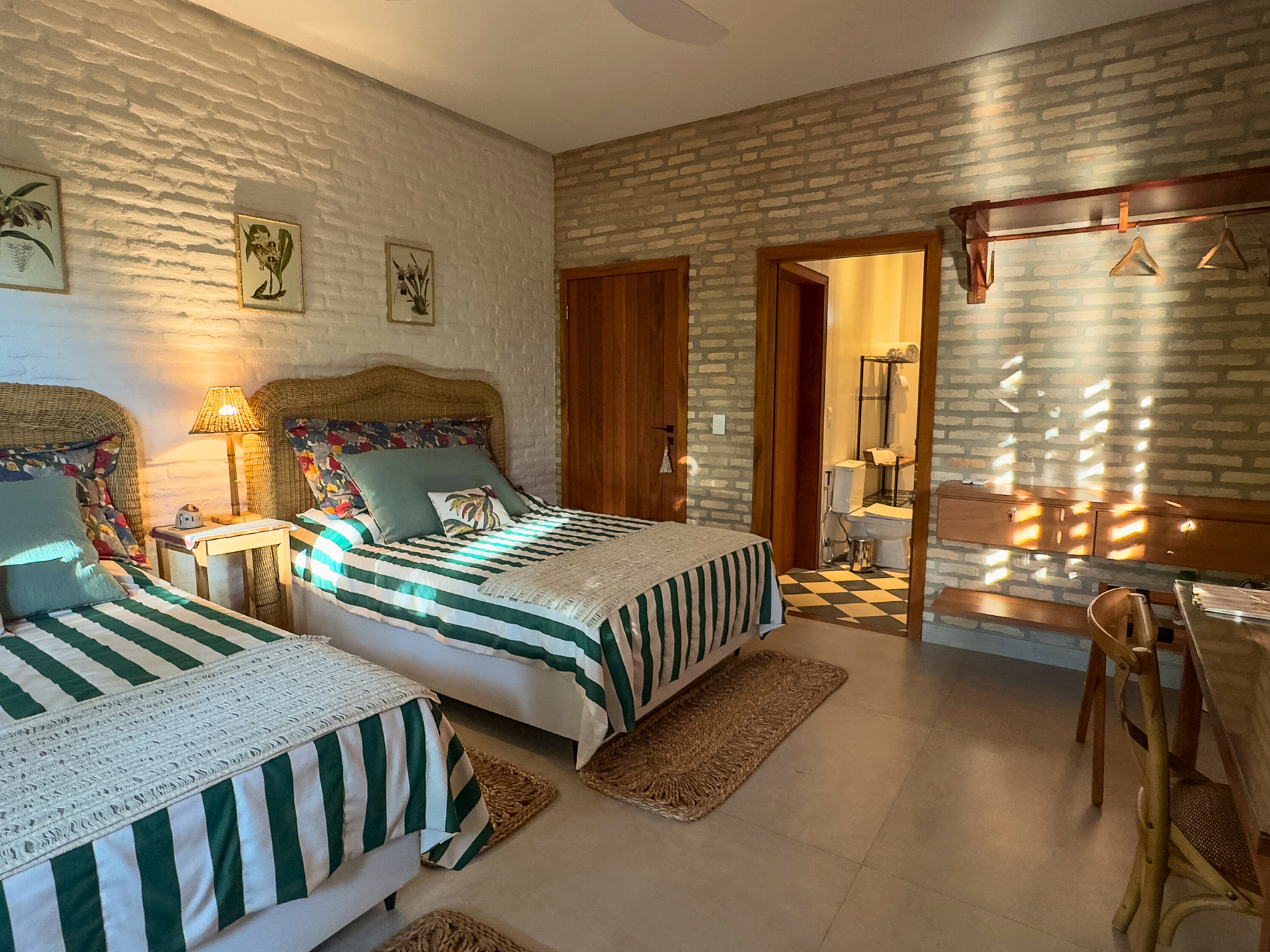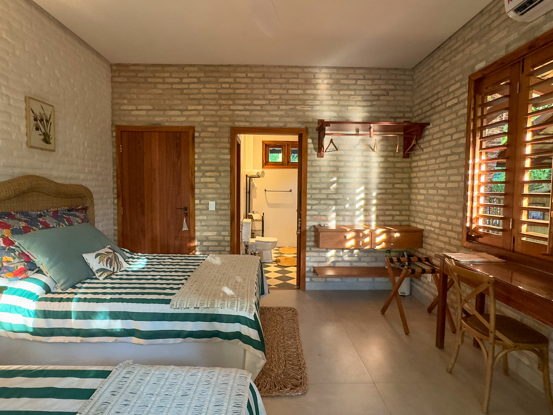 A Suíte Flor de Orquídea é o espaço perfeito para famílias e casais, um refúgio particular com muito conforto e requinte. Seu layout acessível, com portas largas e entrada direta pela varanda, também atende com conforto hóspedes com mobilidade reduzida, contando com: